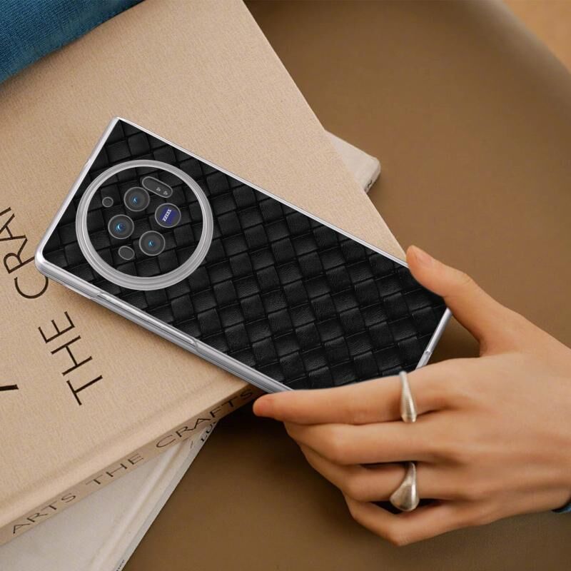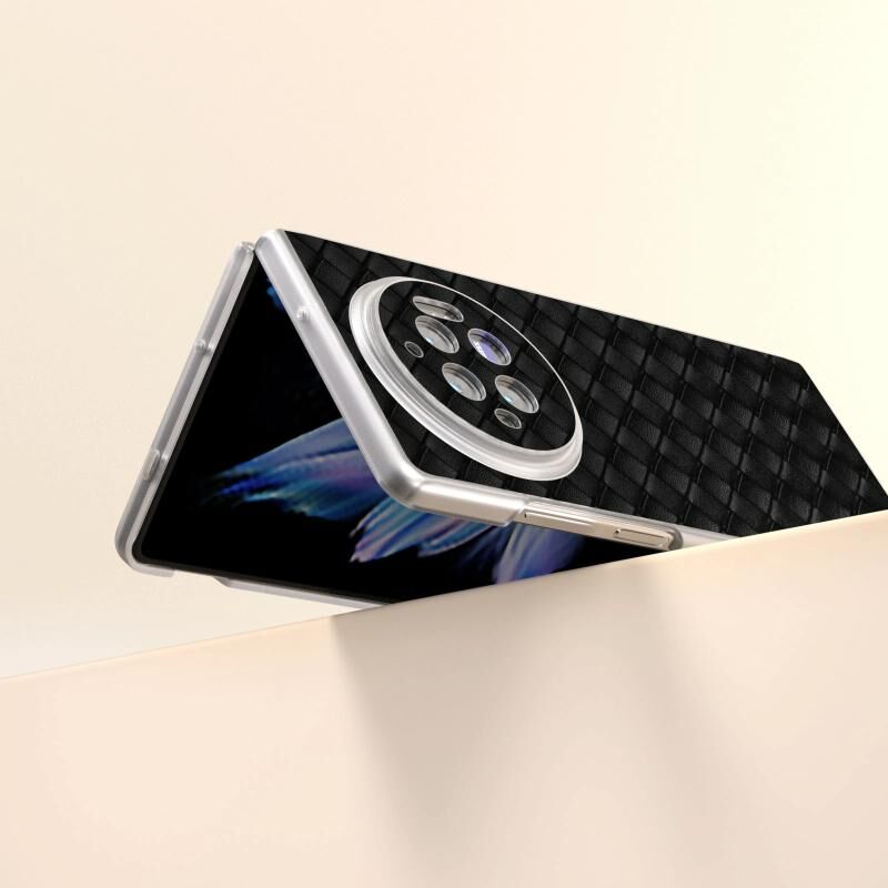 Για το vivo X Fold3 Υφαντή υφή παγωμένο ημιδιαφανές πλαίσιο PU υπόθεση τηλεφώνου (Μαύρο)