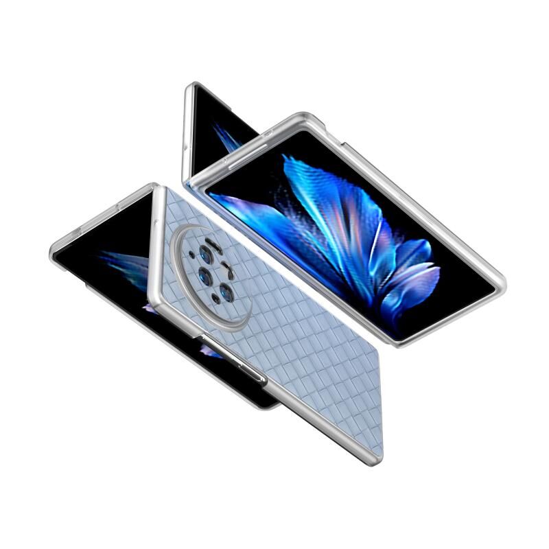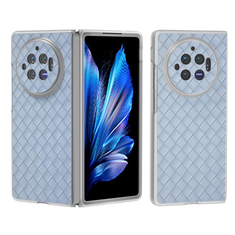 Για το vivo X Fold3 Υφαντή υφή παγωμένο ημιδιαφανές πλαίσιο PU υπόθεση τηλεφώνου (Ανοιχτό μπλε)