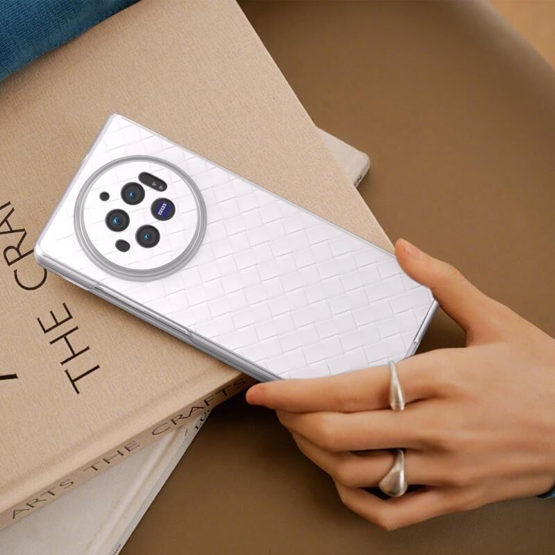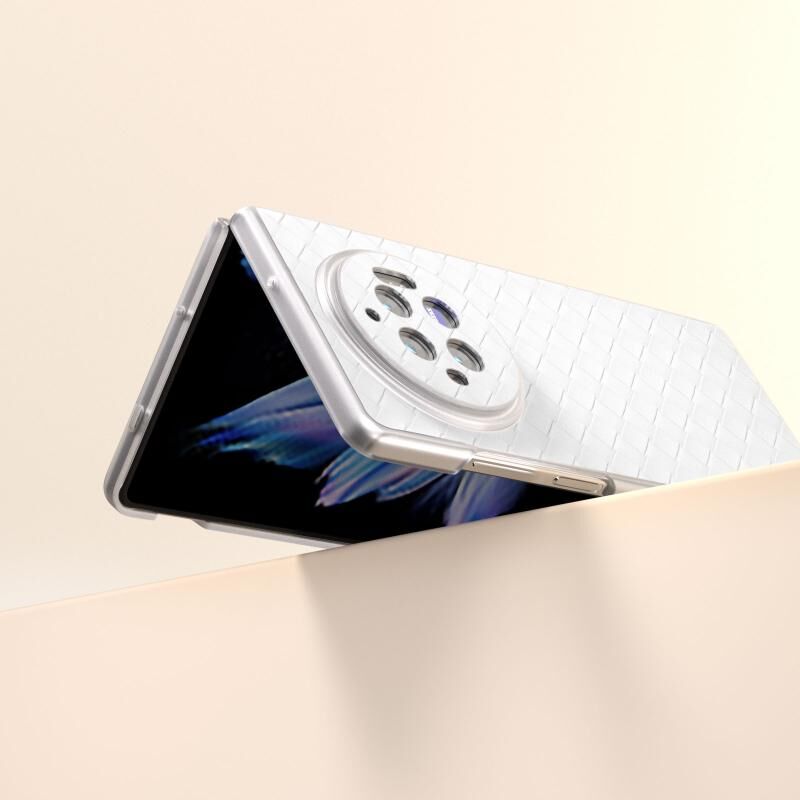 Για το vivo X Fold3 Υφαντή υφή παγωμένο ημιδιαφανές πλαίσιο PU υπόθεση τηλεφώνου (Λευκό)