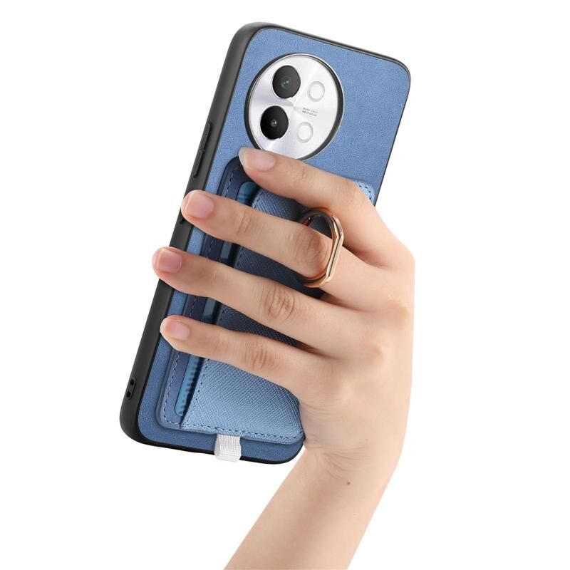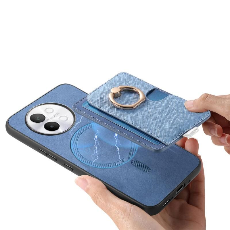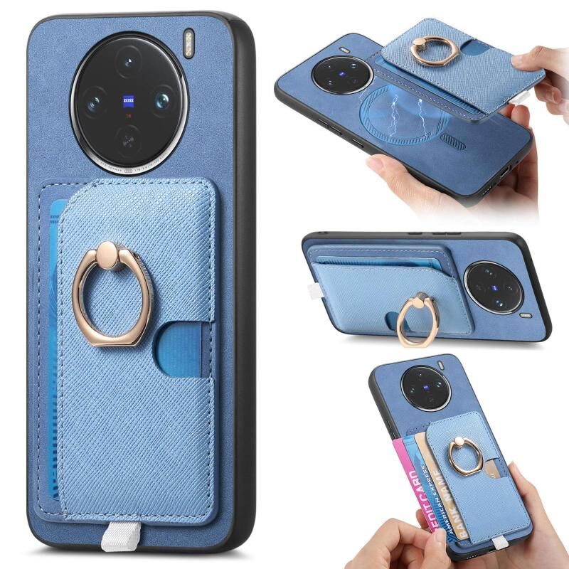 Θήκη τηλεφώνου MagSafe για vivo X100 5G, Ρετρό Δερμάτινη με Σταυρωτό Σχέδιο και Ενσωματωμένη Θήκη Κάρτας στο Πλαϊνό Μέρος (Μπλε)
