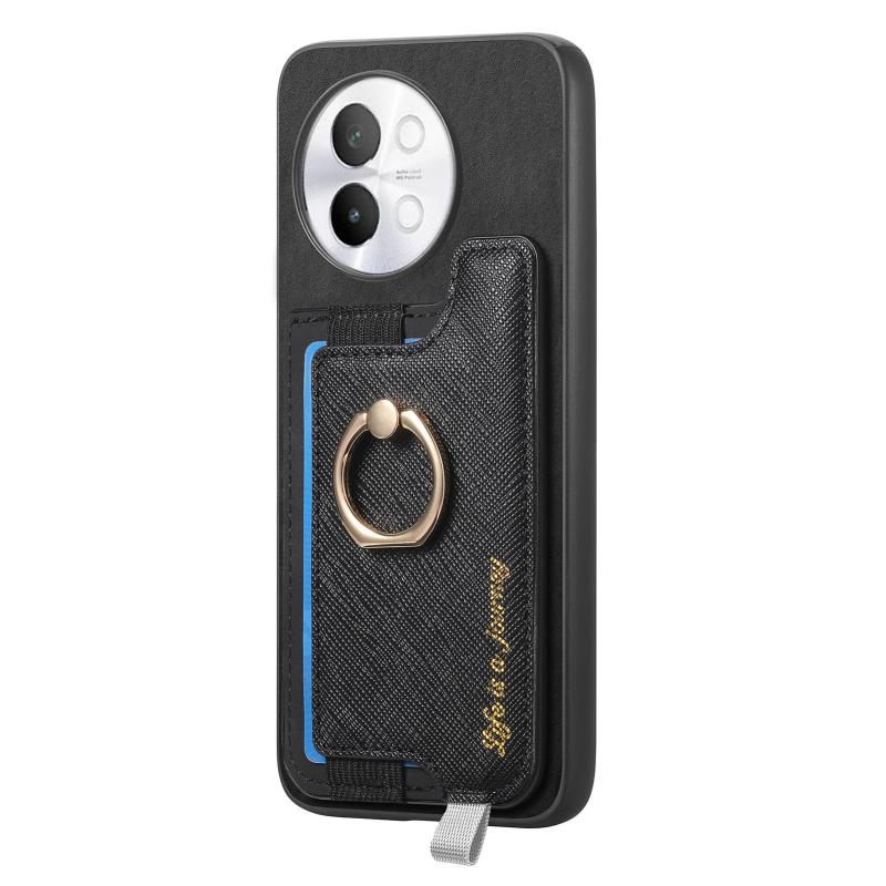 For vivo X100 5G Retro Magsafe Cross Leather Ring Holder Card Bag Phone Case(Black)
