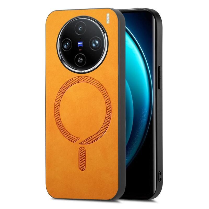 Θήκη τηλεφώνου για vivo X100 5G Retro Magsafe Μαγνητική PU Πίσω Κάλυψη (Κίτρινο)