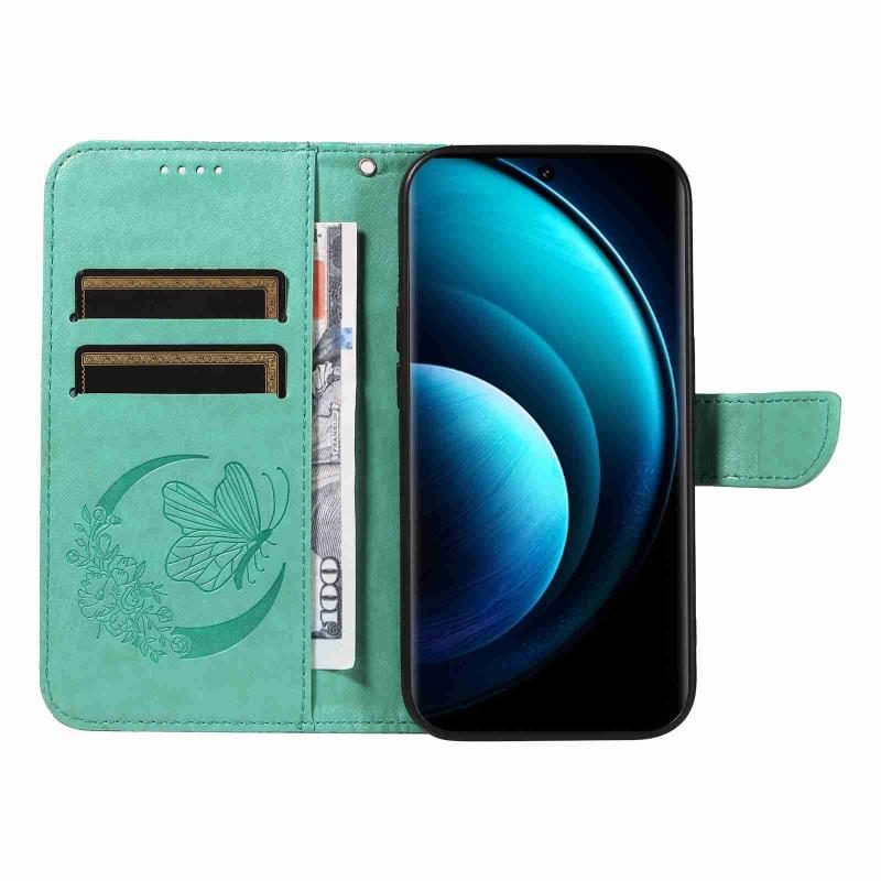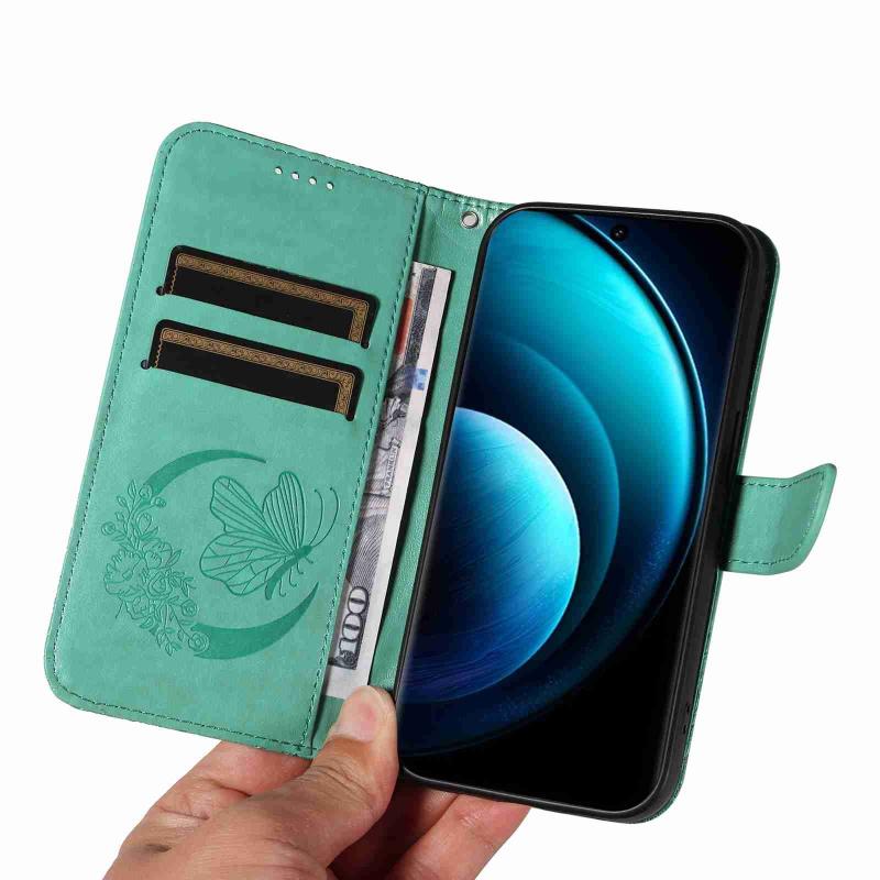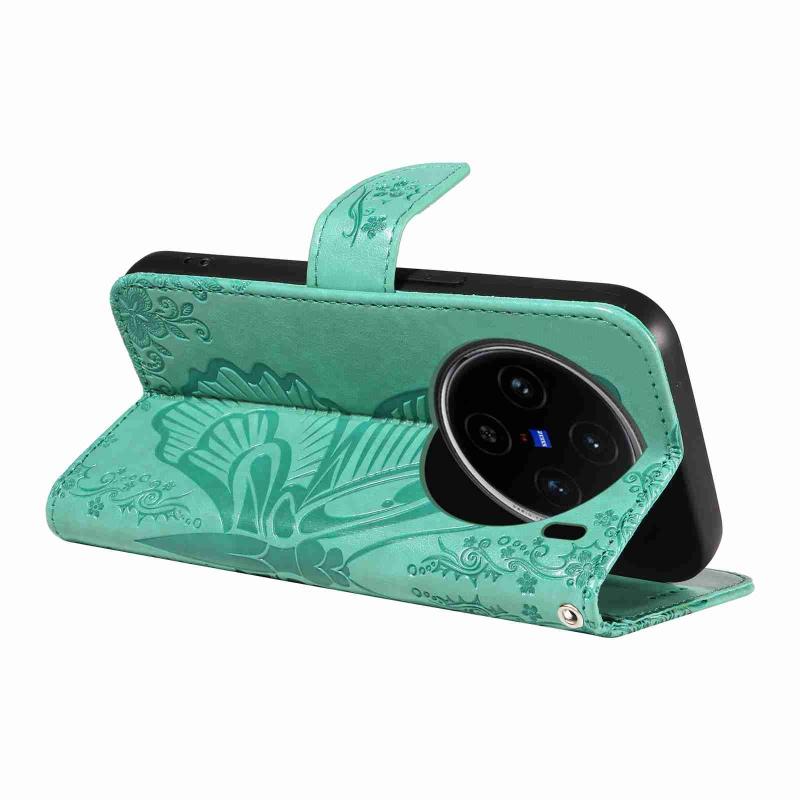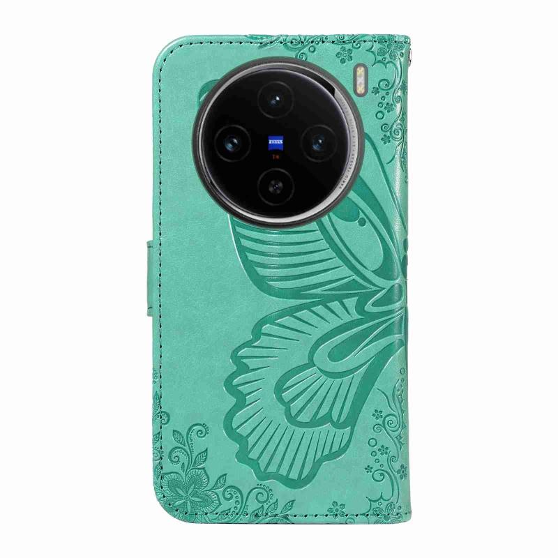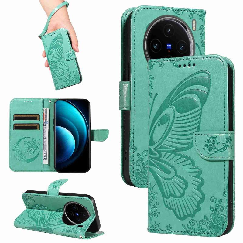 For vivo X100 5G Swallowtail Butterfly Embossed Leather Phone Case(Green)