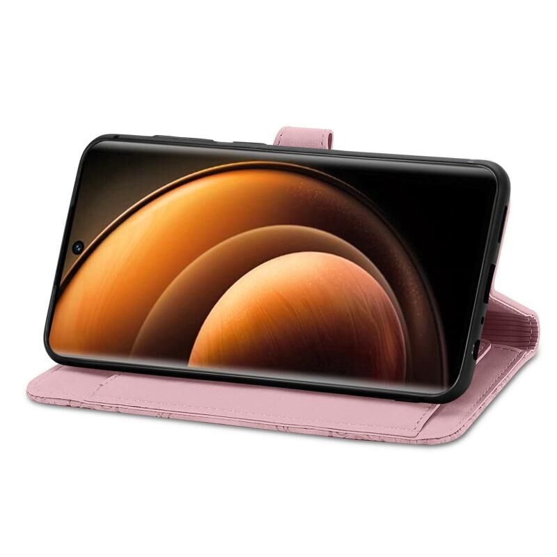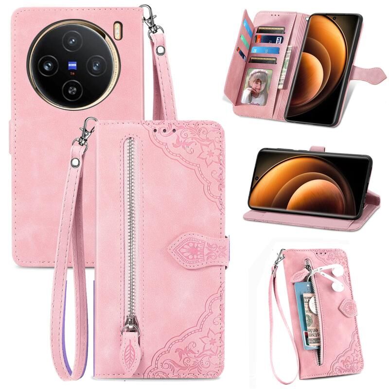 Για vivo X100 ανάγλυφο λουλούδι φερμουάρ δερμάτινη θήκη τηλεφώνου (ροζ)