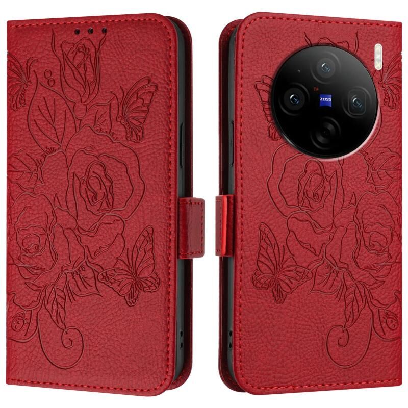 Θήκη τηλεφώνου δερμάτινη με ανάγλυφο σχέδιο τριαντάφυλλου και προστασία RFID κατά της κλοπής για vivo X100 (Πράσινη)