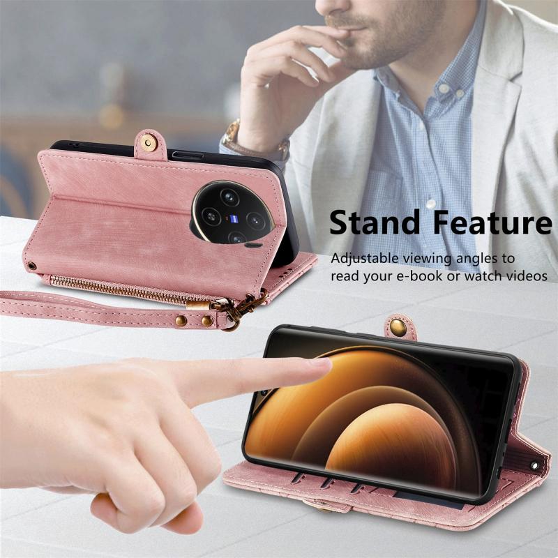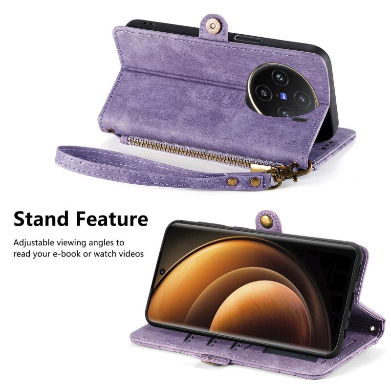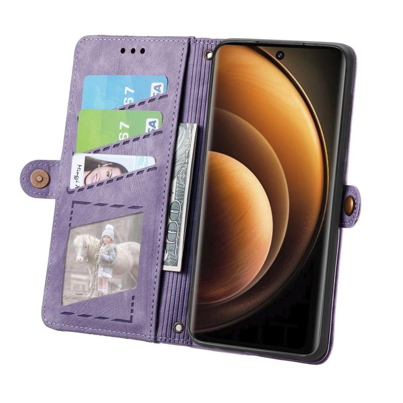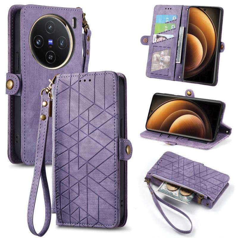 For vivo X100 Geometric Zipper Wallet Side Buckle Leather Phone Case(Purple)