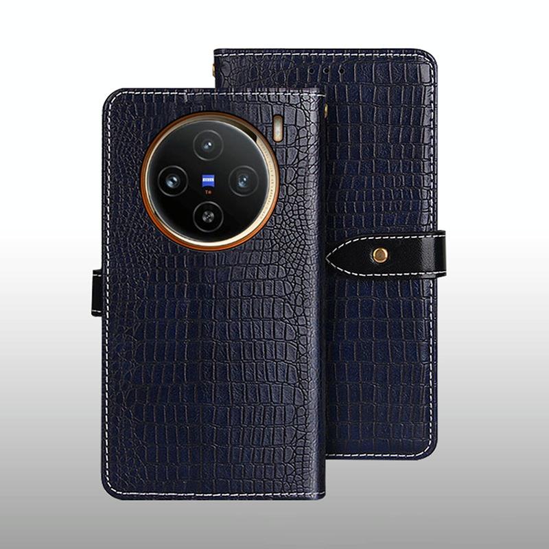 Θήκη τηλεφώνου από δέρμα με υφή κροκόδειλου για vivo X100 idewei (Σκούρο Μπλε) (Σκούρο μπλε)