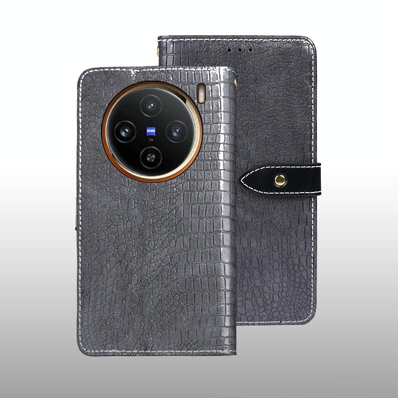 Θήκη τηλεφώνου από δέρμα με υφή κροκόδειλου για vivo X100 idewei (Σκούρο Μπλε) (Γκρι)