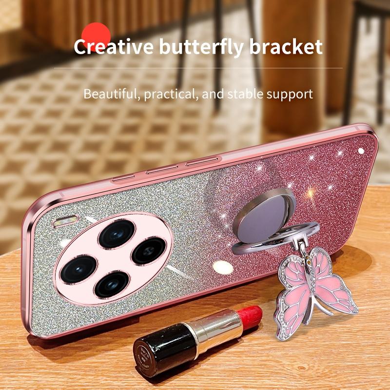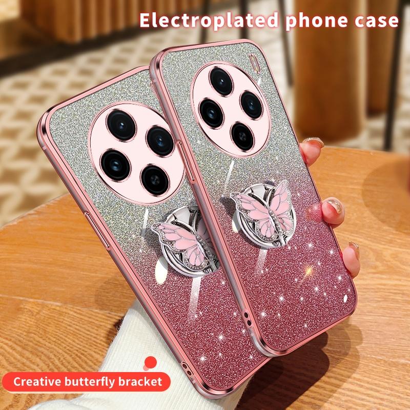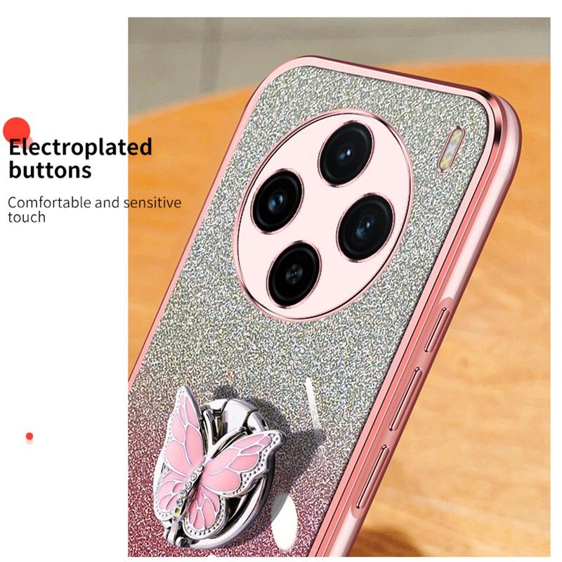 Θήκη τηλεφώνου TPU με επιμετάλλωση, διαβαθμισμένη λάμψη, πεταλούδα για vivo X100 (Ροζ)