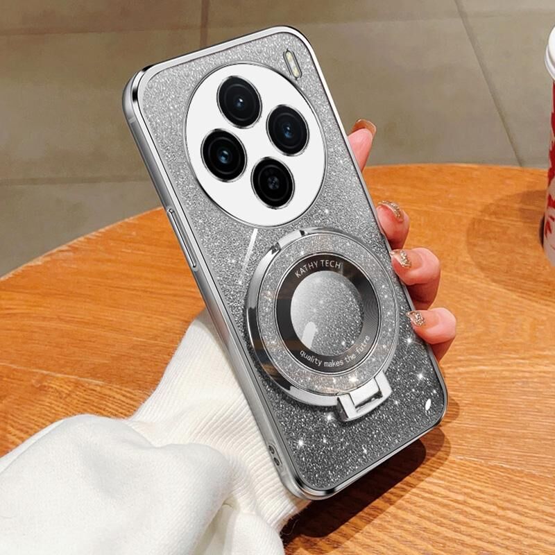 Θήκη τηλεφώνου TPU για vivo X100 με επιμετάλλωση, διαβαθμισμένη λάμψη, στρογγυλή βάση (Ροζ)