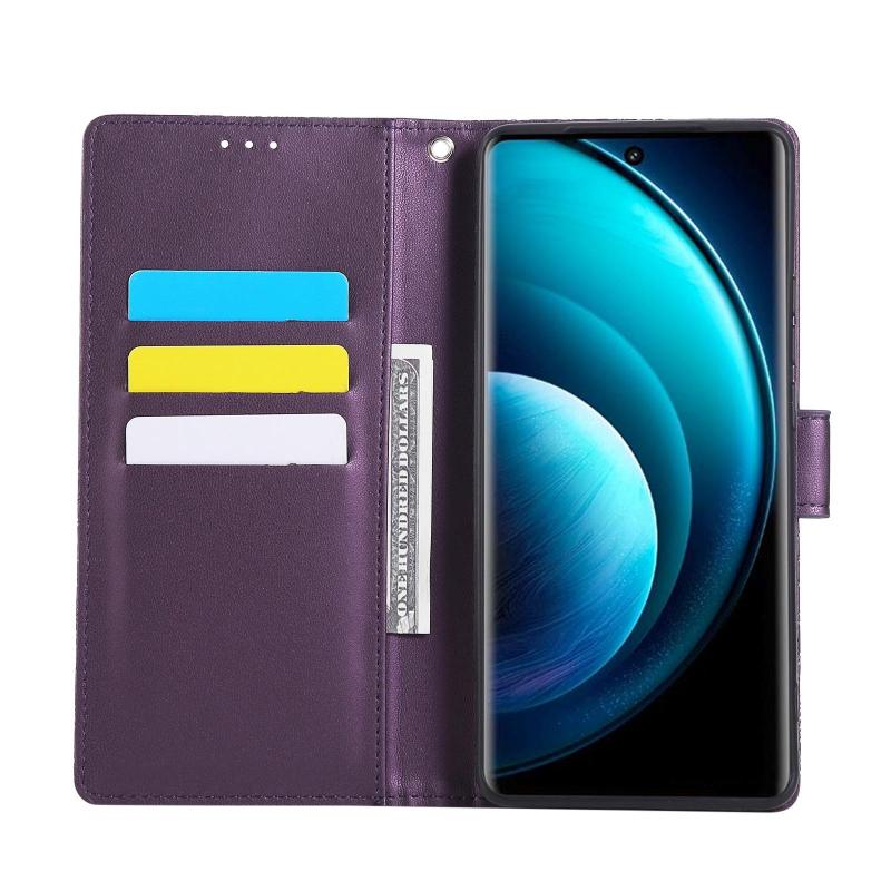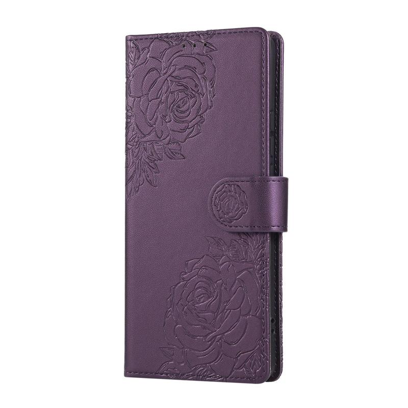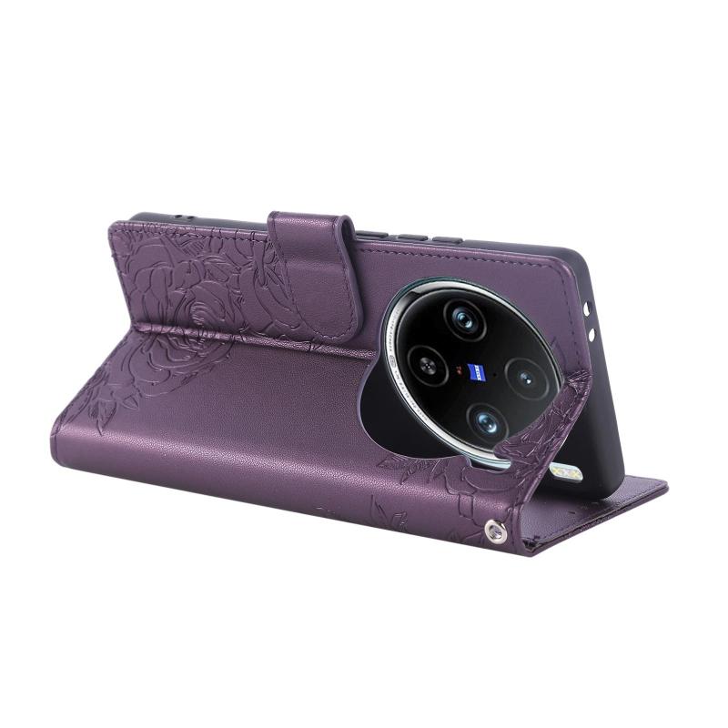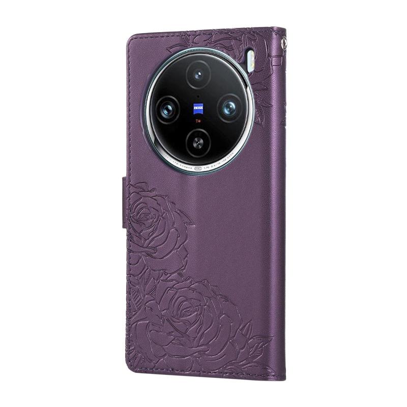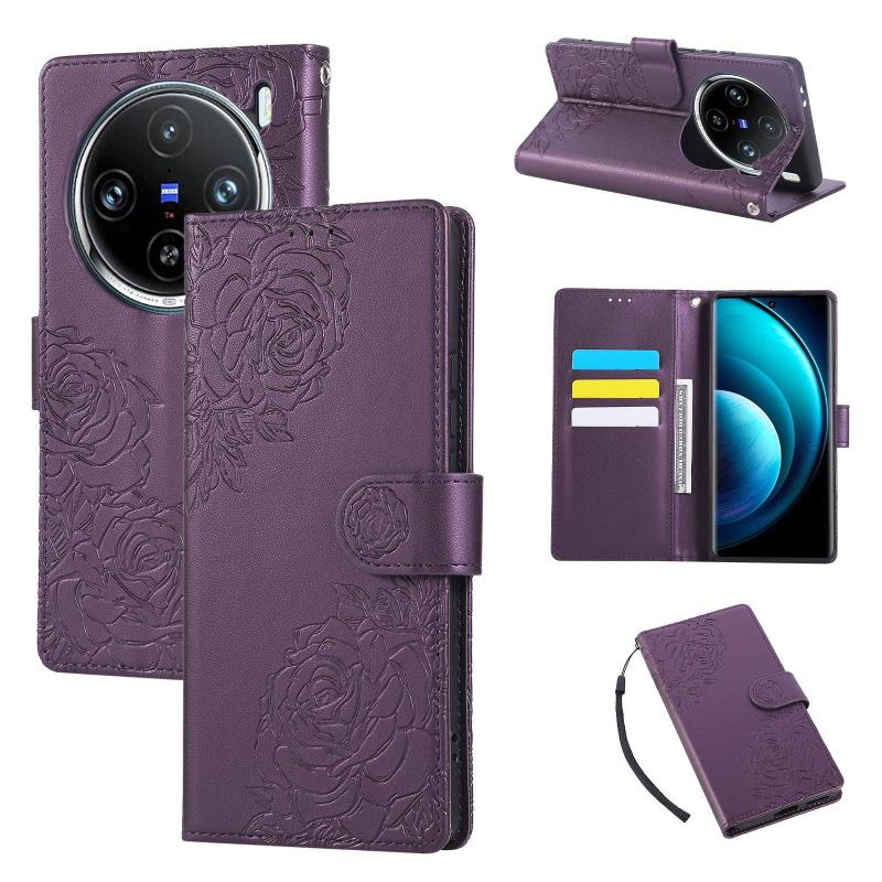 For vivo X100 Pro 5G / 100s Pro 5G Rose Flower Embossed 3-Card Slots Leather Phone Case(Deep Purple)