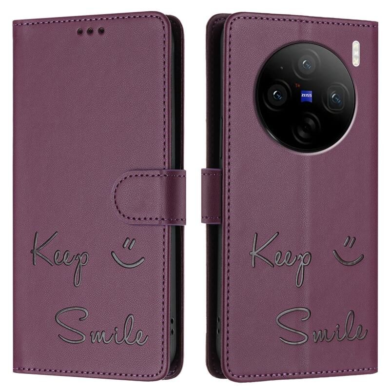 Για vivo X100 Pro 5G Χαμόγελο ανάγλυφο RFID δερμάτινη θήκη τηλεφώνου (Violet)