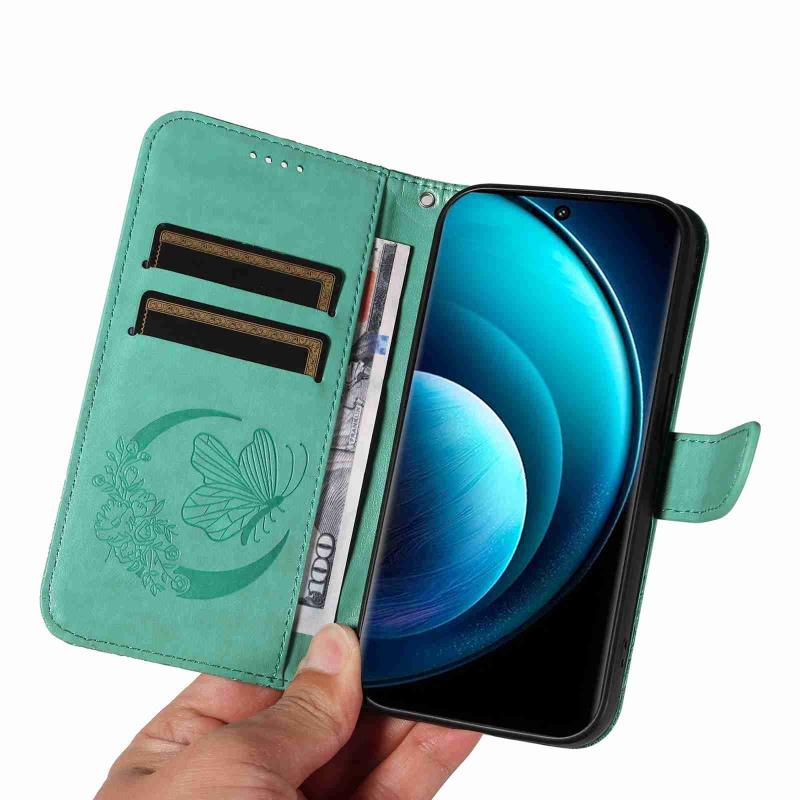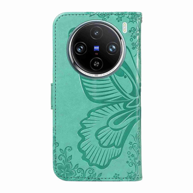 For vivo X100 Pro 5G Swallowtail Butterfly Embossed Leather Phone Case(Green)