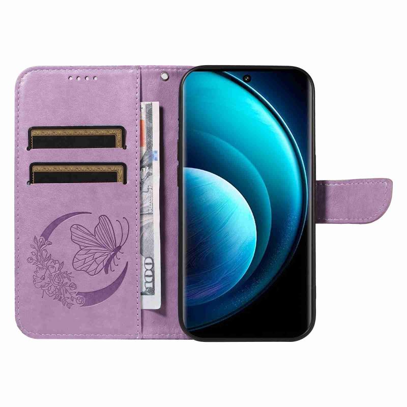 For vivo X100 Pro 5G Swallowtail Butterfly Embossed Leather Phone Case(Purple)
