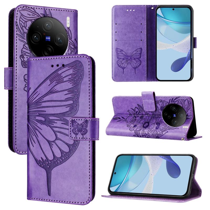 For vivo X100 Pro Embossed Butterfly Leather Phone Case(Light Purple)