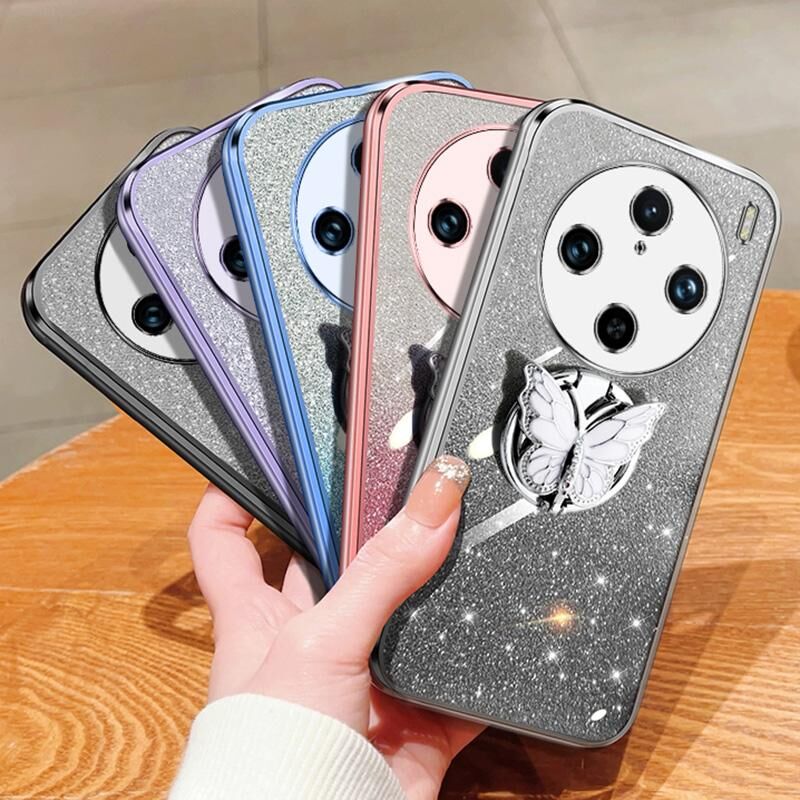 Θήκη τηλεφώνου TPU με σχέδιο πεταλούδας και ιριδίζουσα λάμψη για vivo X100 Pro (Μωβ)