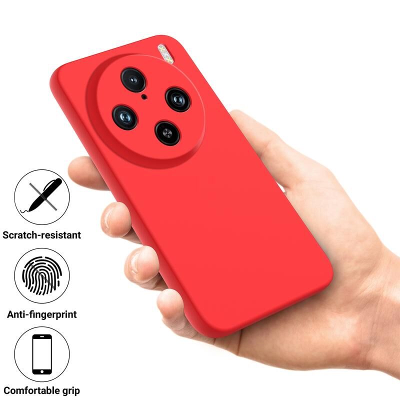Θήκη τηλεφώνου για vivo X100 Pro, μονόχρωμη, υγρή σιλικόνη, ανθεκτική σε πτώσεις, πλήρης κάλυψη (Κόκκινο)