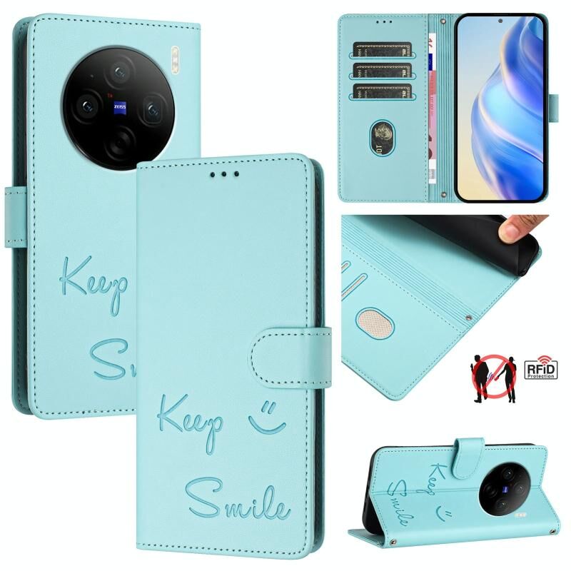 Για vivo X100 Χαμόγελο ανάγλυφο RFID δερμάτινη θήκη τηλεφώνου (πράσινο μέντα)