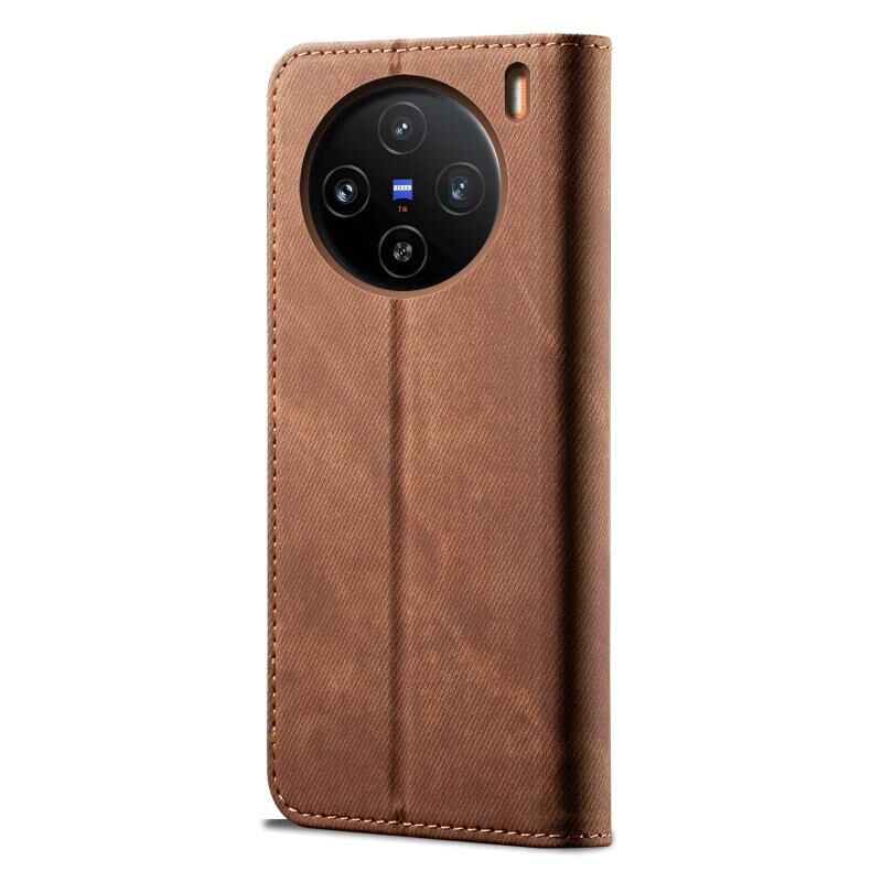 Θήκη τηλεφώνου από δέρμα με υφή denim για vivo X100 Ultra (Καφέ)