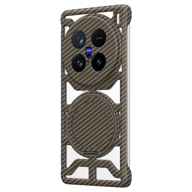 For vivo X100 Ultra Hollow Carbon Fiber Rotating Bracket MagSafe Phone Case(Gold)