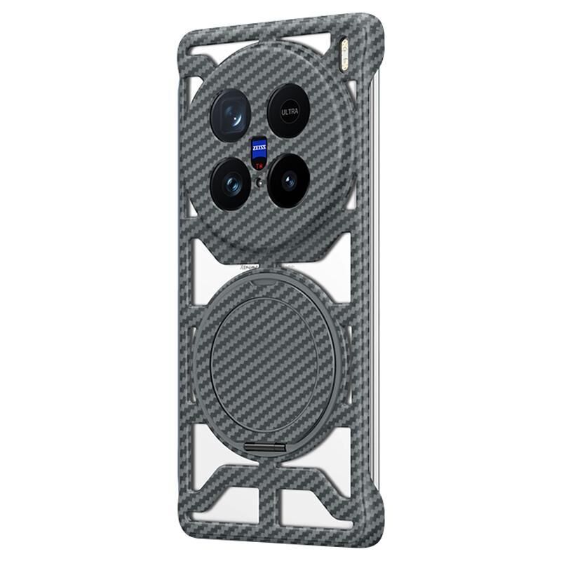 For vivo X100 Ultra Hollow Carbon Fiber Rotating Bracket MagSafe Phone Case(Grey)