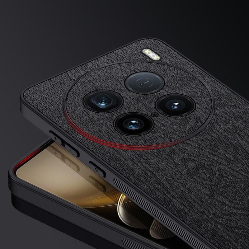 Για το vivo X100 Ultra Tree Bark δερμάτινη θήκη τηλεφώνου με αντικραδασμική προστασία (Μαύρο)