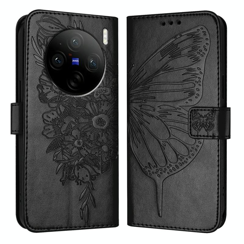 For vivo X100s 5G Embossed Butterfly Leather Phone Case(Black)