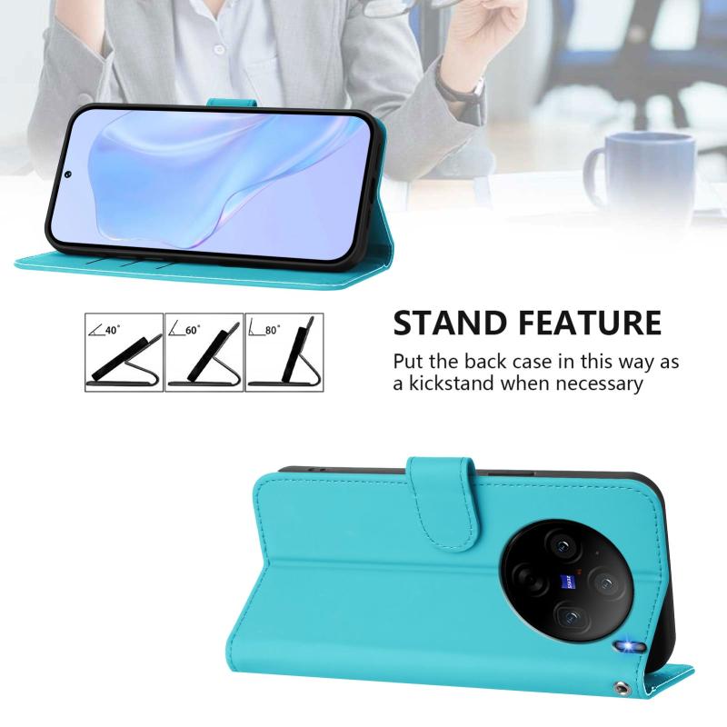 For vivo X100S 5G Skin Feel Solid Color Leather Phone Case with Lanyard(Lake Blue)