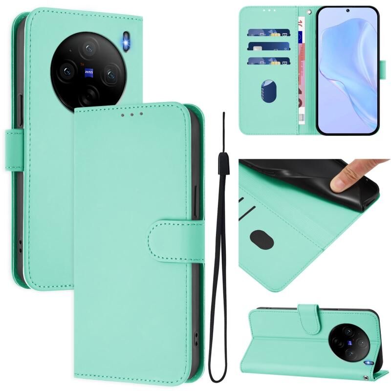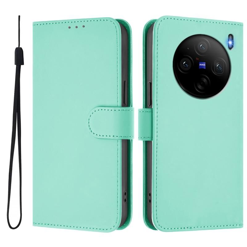 Θήκη τηλεφώνου από δέρμα με συμπαγή χρώμα για vivo X100S 5G με κορδόνι (Καφέ)
