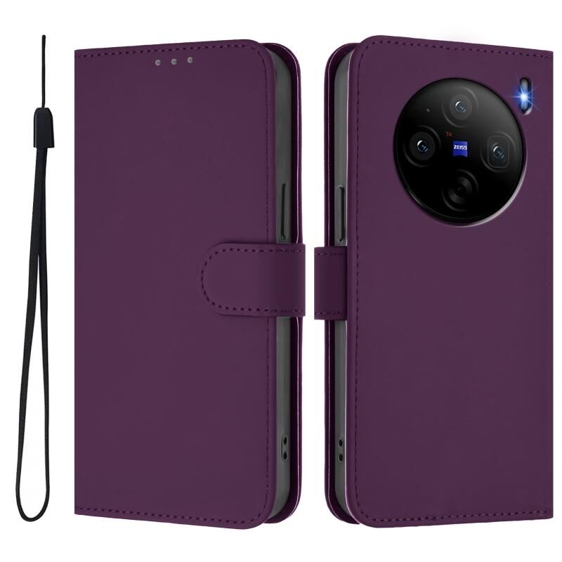 Θήκη τηλεφώνου από δέρμα με συμπαγή χρώμα για vivo X100S 5G με κορδόνι (Μωβ)