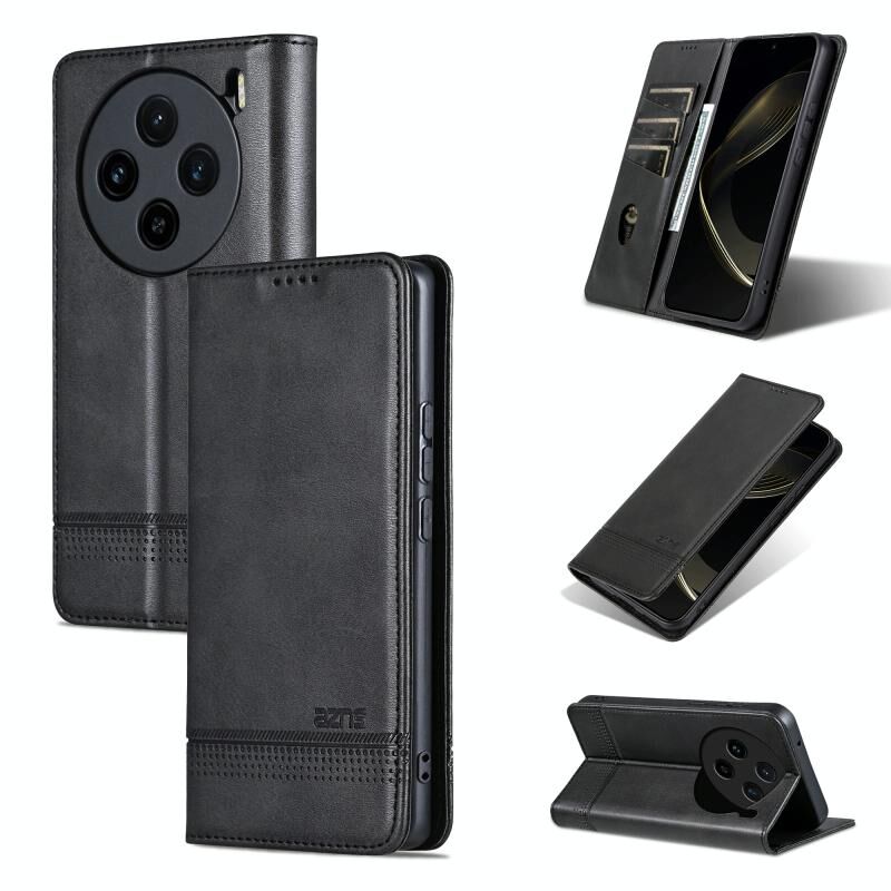 Για το vivo X100s AZNS Μαγνητική θήκη τηλεφώνου από δέρμα με υφή μοσχαριού (μαύρο) (Μαύρο)