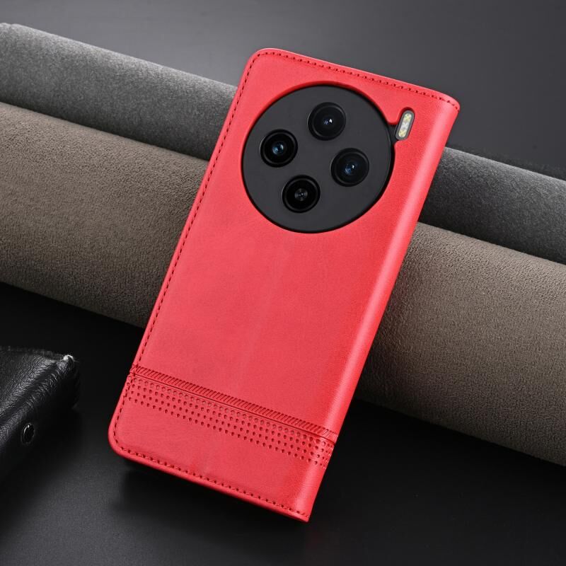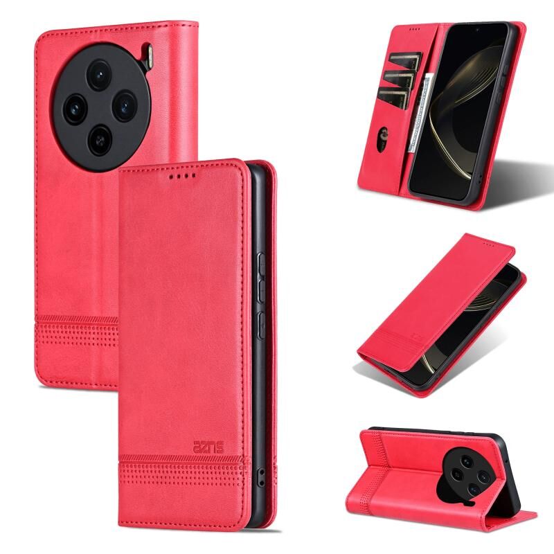 Για το vivo X100s AZNS Μαγνητική θήκη τηλεφώνου από δέρμα με υφή μοσχαριού (κόκκινο) (Κόκκινο)