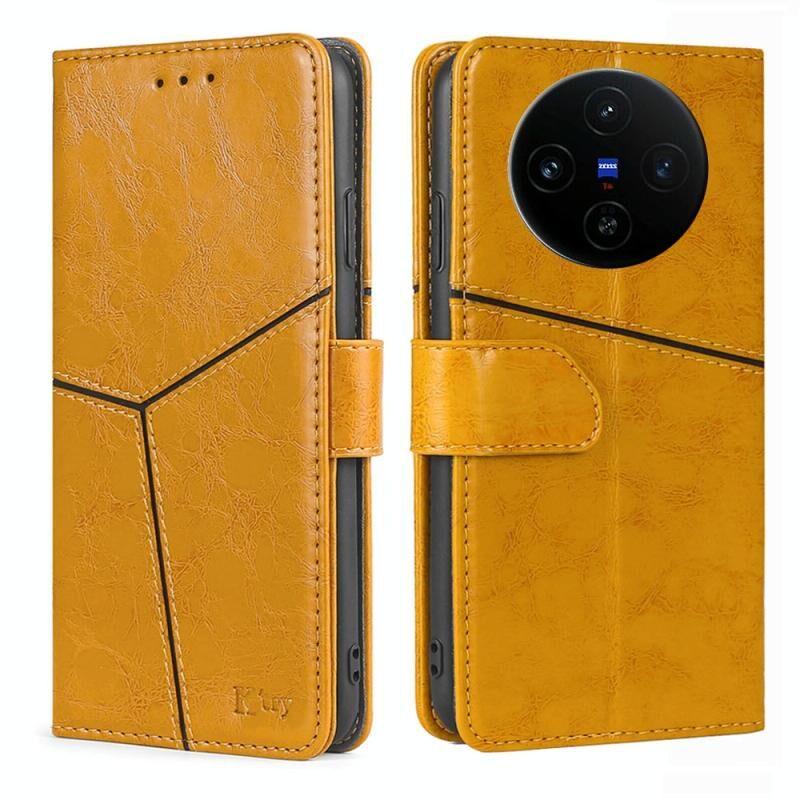 Για vivo X100s Γεωμετρική ραφή δερμάτινη θήκη τηλεφώνου (κίτρινο)