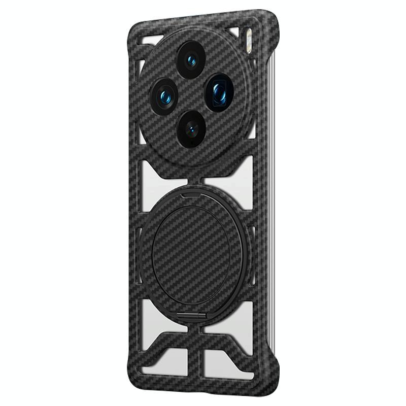 For vivo X100s Hollow Carbon Fiber Rotating Bracket MagSafe Phone Case(Black)