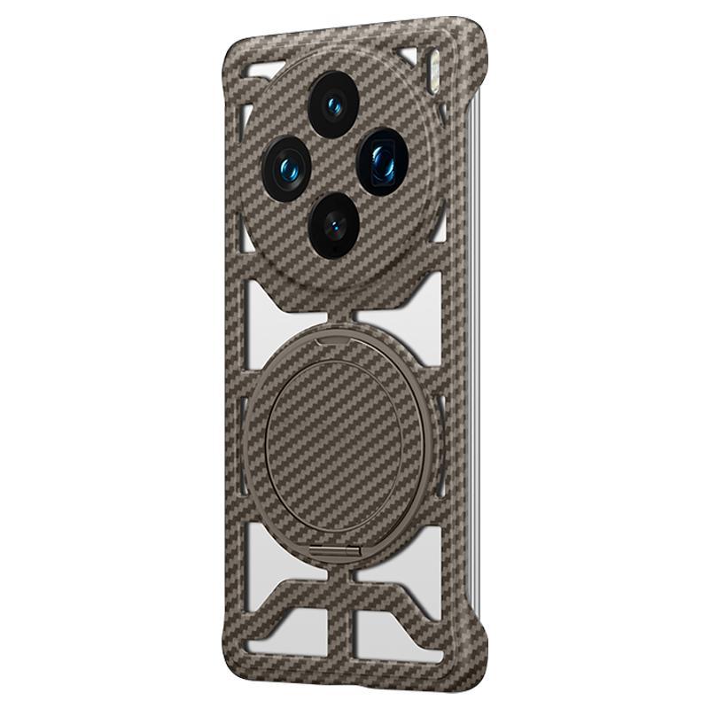 For vivo X100s Hollow Carbon Fiber Rotating Bracket MagSafe Phone Case(Gold)