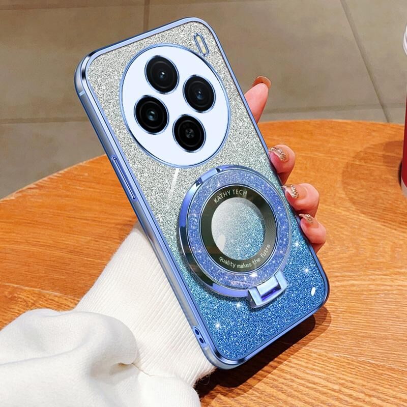 Θήκη τηλεφώνου TPU για vivo X100s με επιμετάλλωση, διαβαθμισμένη λάμψη, στρογγυλή βάση (Ροζ)