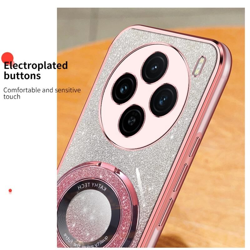Θήκη τηλεφώνου TPU για vivo X100s με επιμετάλλωση, διαβαθμισμένη λάμψη, στρογγυλή βάση (Ροζ)