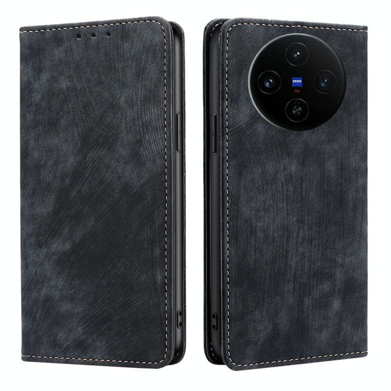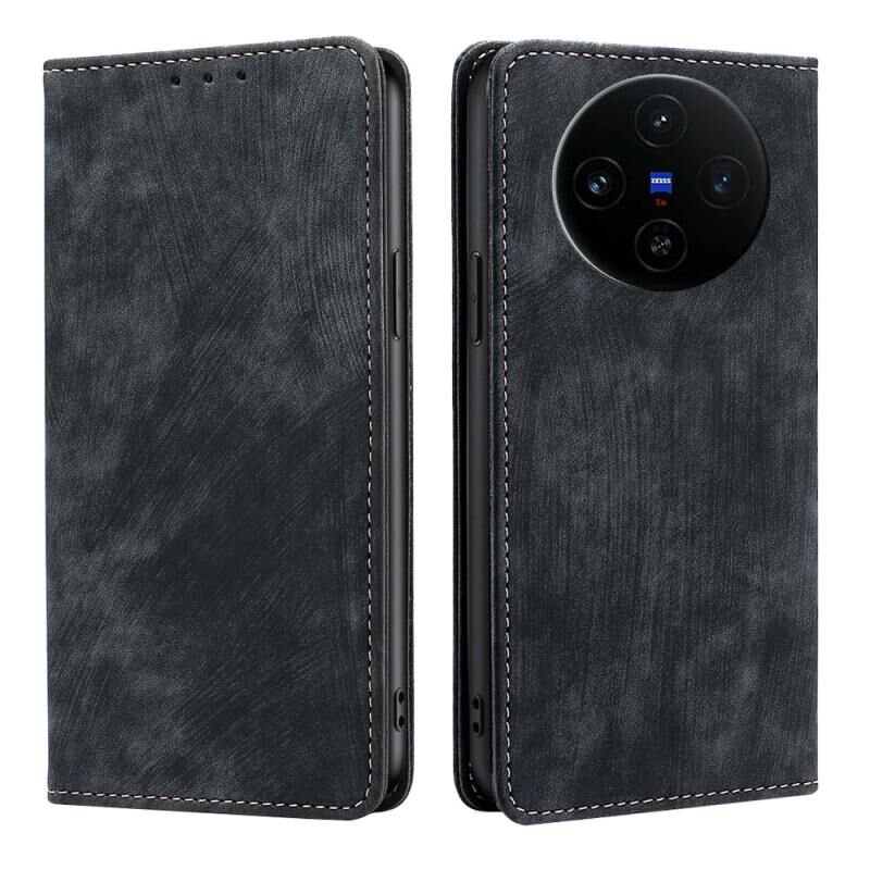 Θήκη τηλεφώνου για vivo X100s RFID αντι-κλοπής, μαγνητική, δερμάτινη (Μαύρο)