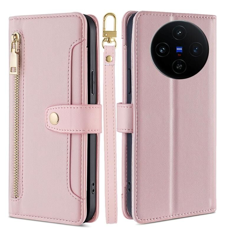 Για vivo X100s Πρόβατα Υφή Cross-body φερμουάρ πορτοφόλι δερμάτινη θήκη τηλεφώνου (ροζ)