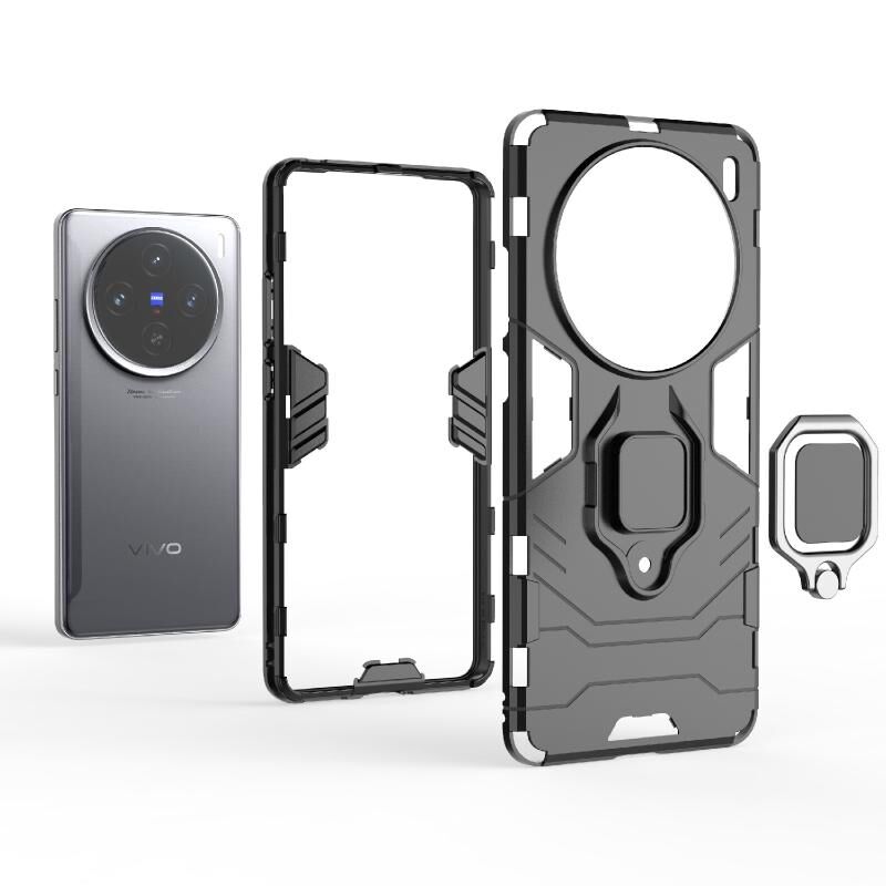 For vivo X100S Shockproof PC + TPU Holder Phone Case(Black)