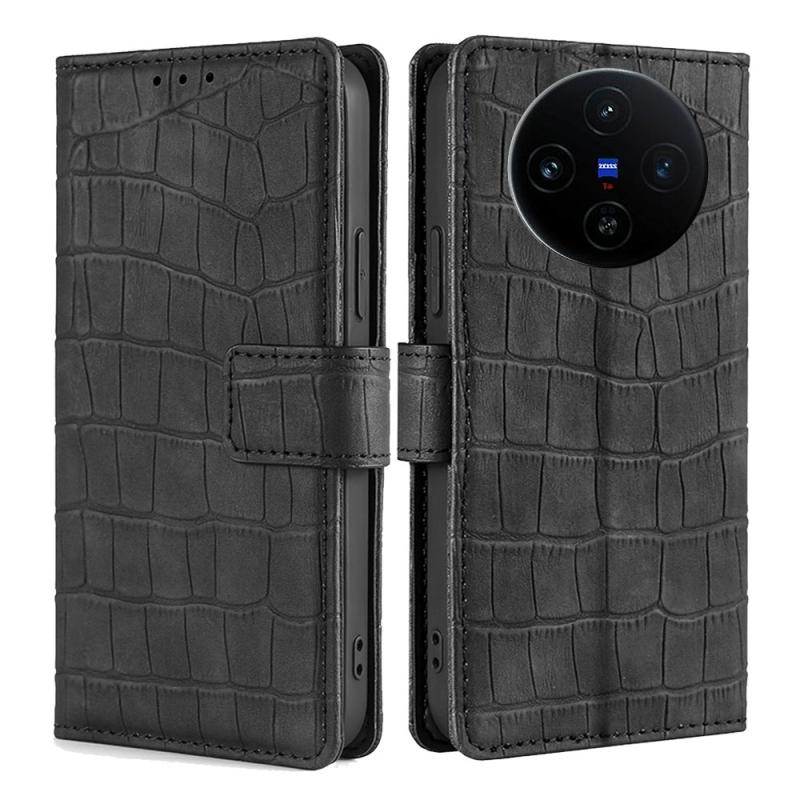 For vivo X100s Skin Feel Crocodile Magnetic Clasp Leather Phone Case(Black)