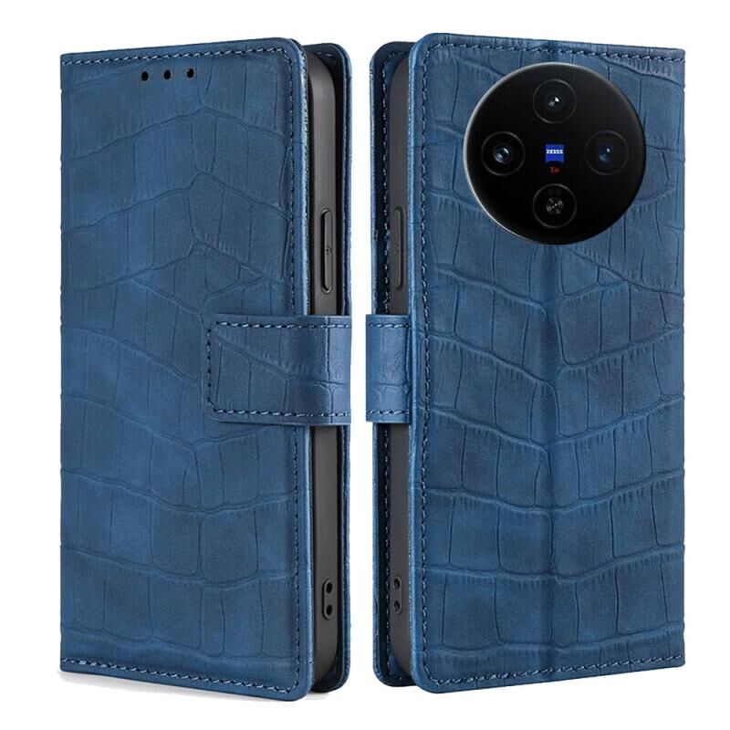 Θήκη τηλεφώνου δερμάτινη με μαγνητικό κούμπωμα και υφή κροκόδειλου για vivo X100s (Μπλε)