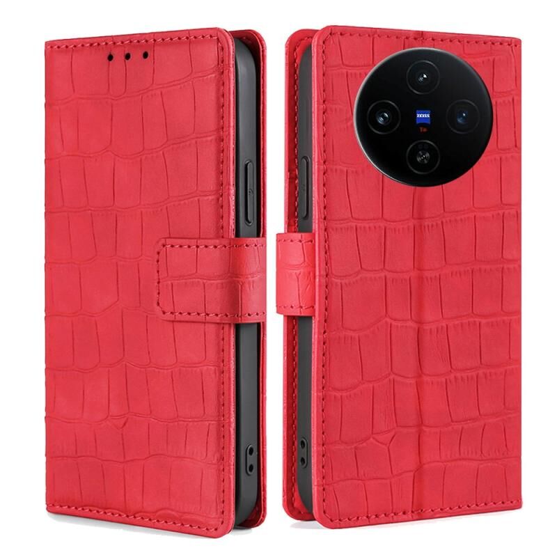 Θήκη τηλεφώνου δερμάτινη με μαγνητικό κούμπωμα και υφή κροκόδειλου για vivo X100s (Κόκκινο)