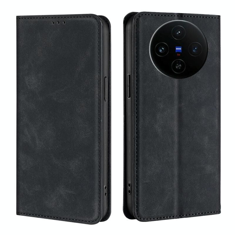 Για vivo X100s Skin Feel μαγνητική δερμάτινη θήκη τηλεφώνου (μαύρο)