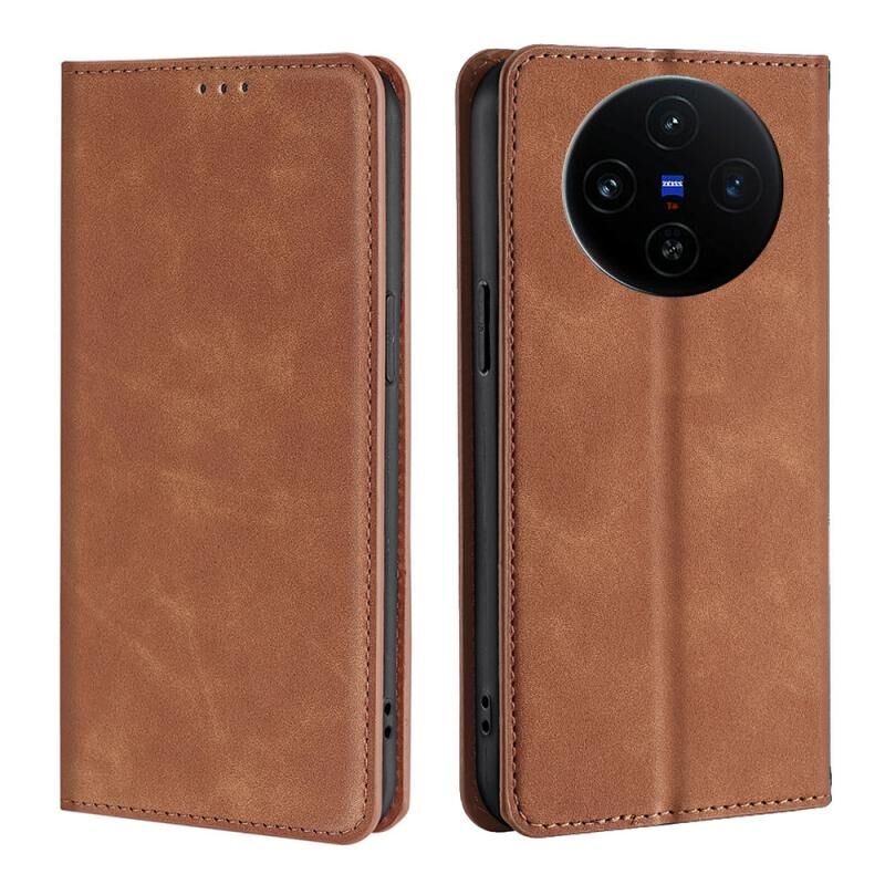 Για το vivo X100s Skin Feel μαγνητική δερμάτινη θήκη τηλεφώνου (ανοιχτό καφέ)