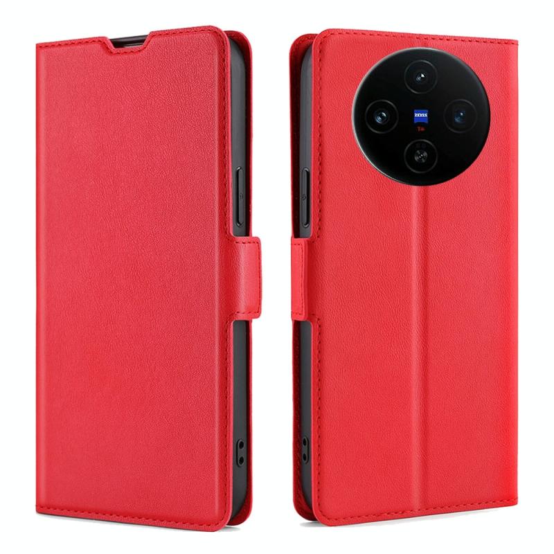 Θήκη τηλεφώνου δέρμα οριζόντιας αναδίπλωσης για vivo X100s, εξαιρετικά λεπτή με πλευρική αγκράφα τάσης (Κόκκινο)