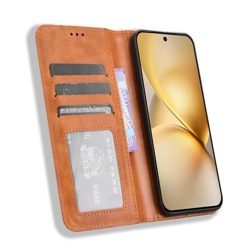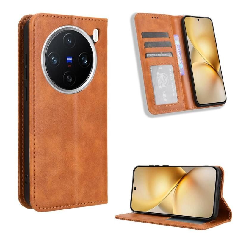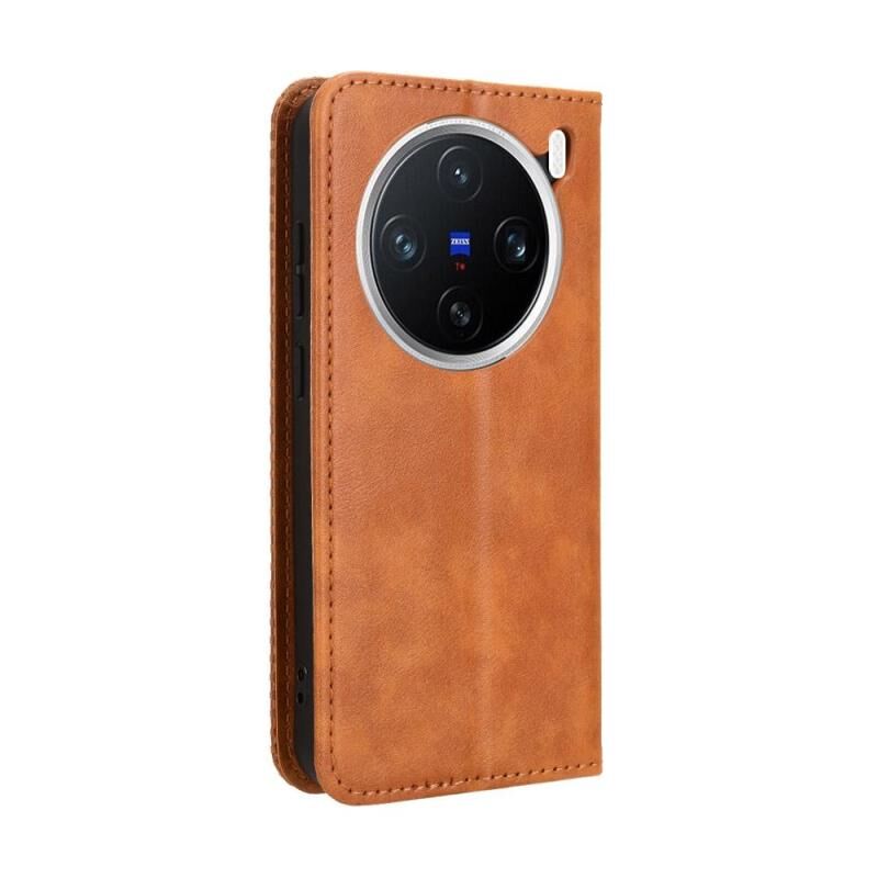 Θήκη τηλεφώνου από δέρμα με ανάγλυφη υφή και μαγνητικό κούμπωμα για vivo X200 5G (Καφέ)