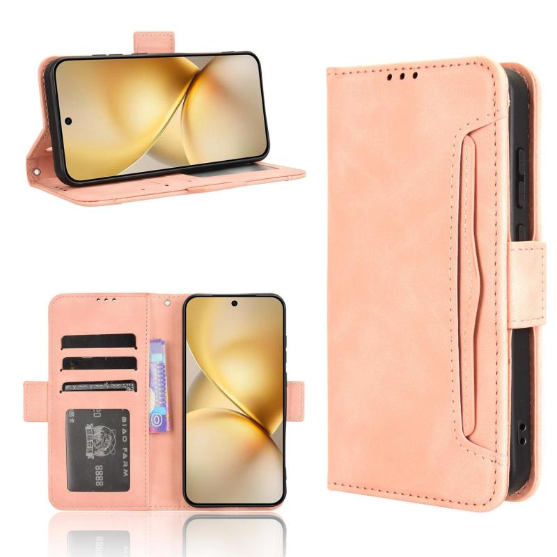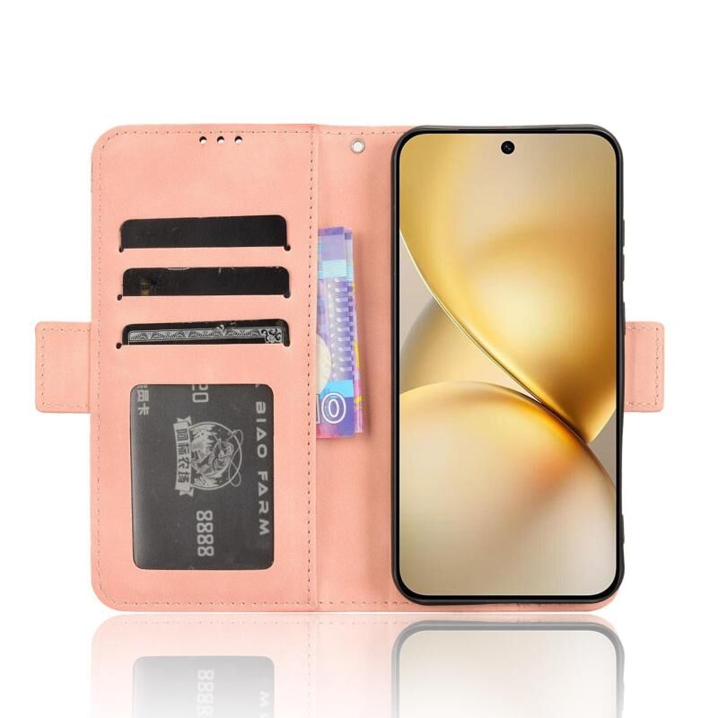 Θήκη τηλεφώνου από δέρμα με υφή μοσχαριού και θήκες καρτών για vivo X200 5G (ρόζ)