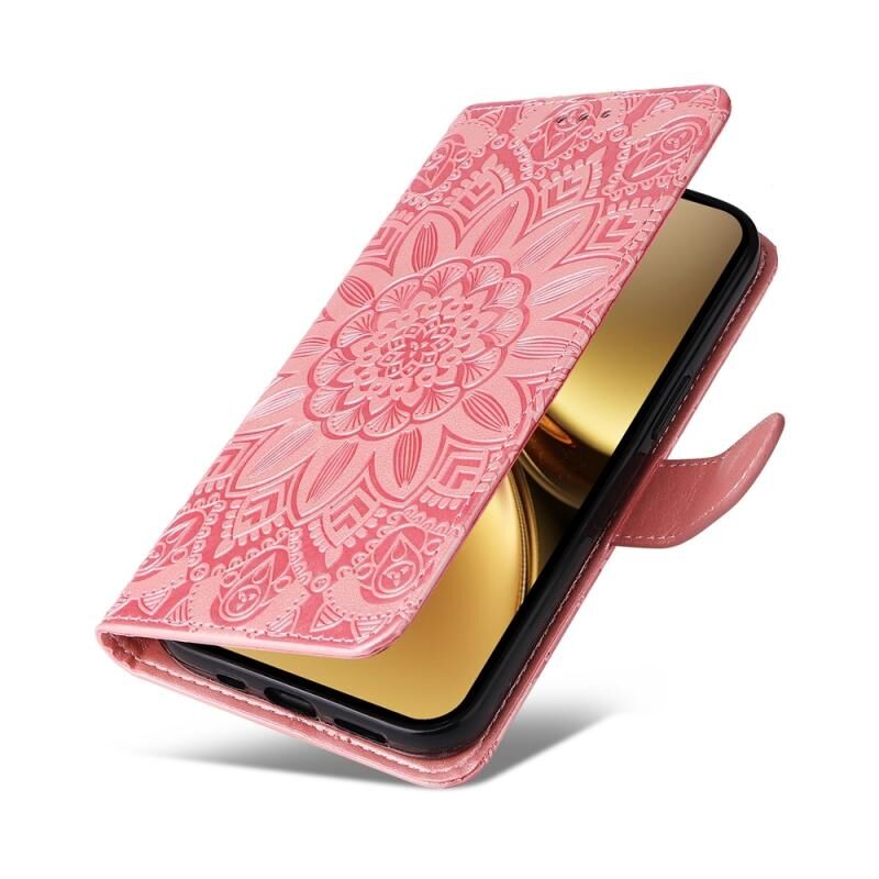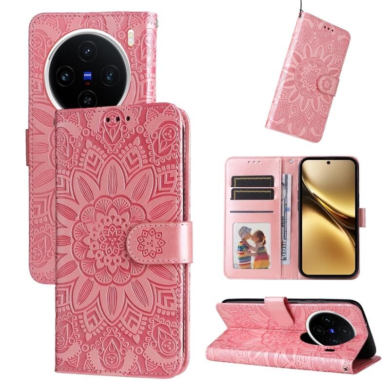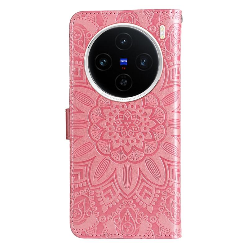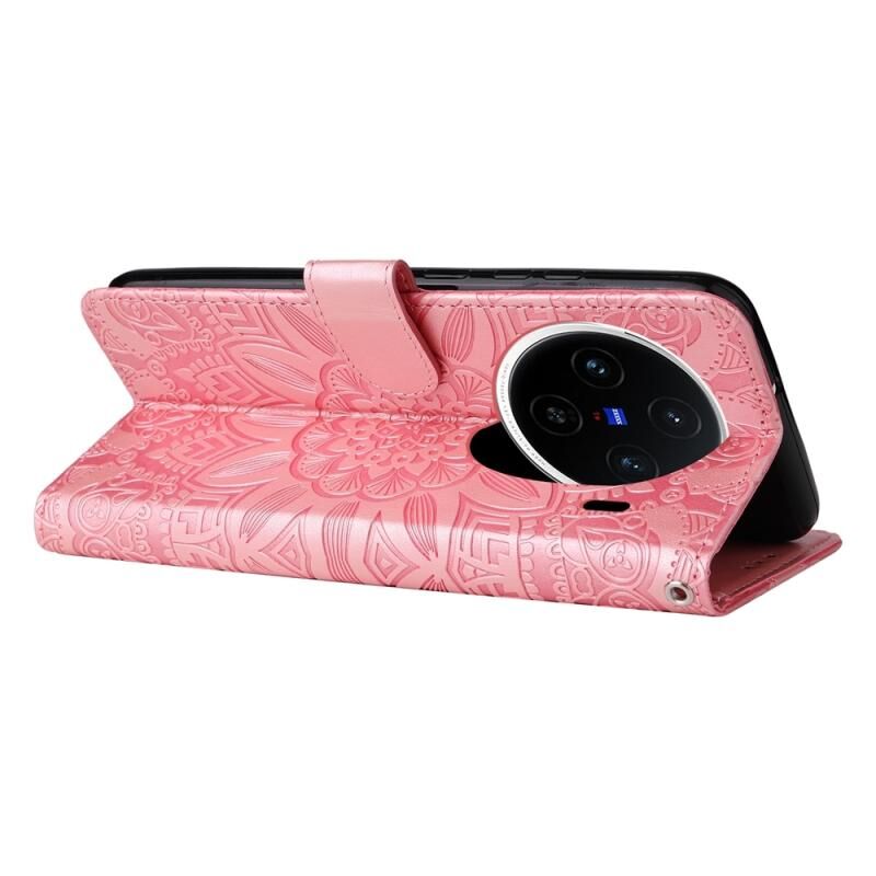 Θήκη τηλεφώνου vivo X200 με ανάγλυφο σχέδιο ηλίανθου από δέρμα (Ροζ χρυσός)