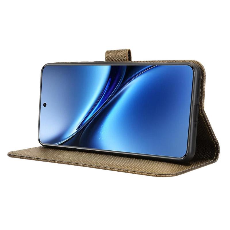 Θήκη τηλεφώνου για vivo X200 Pro 5G από δέρμα με διαμαντένια υφή (Καφέ)